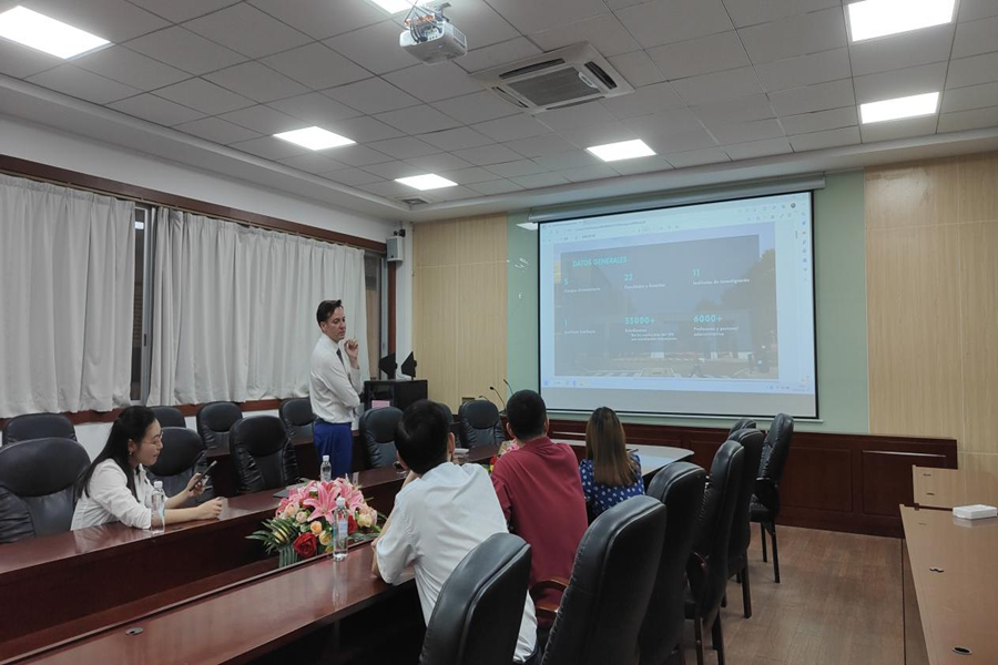 徐超对Luis Rubio的专程来访表示欢迎,并介绍了广州商学院的发展历程、外国语学院办学情况、国际教育路径探索以及西班牙语专业建设等基本情况。Luis Rubio为了让我院学生更充分地了解西班牙语留学和萨拉戈萨大学的情况,介绍了西班牙萨拉戈萨大学的学科建设、校园环境和专业特色等基本情况。他指出,萨拉戈萨大学力求成为一所优质大学以服务西班牙阿拉贡大区的进步,并以其调研教学品质成为全国乃至全世界公认的重点大学。Luis Rubio希望以本次访问交流为起点,在学生层面、教师层面和科研层面与我校各个学科、各个专业展开广泛的合作。双方就拟合作开展的“夏令营”、“2+2”、“3+1”本科生项目以及硕博士研究生项目等进行了热烈的讨论,取得了丰硕的成果。
